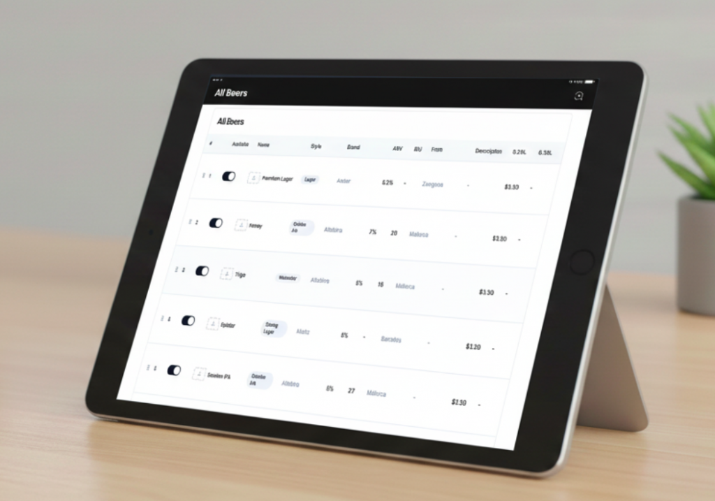 Add, edit, or hide beers instantly with a simple toggle. Keep your menu always fresh and accurate — no printing needed.